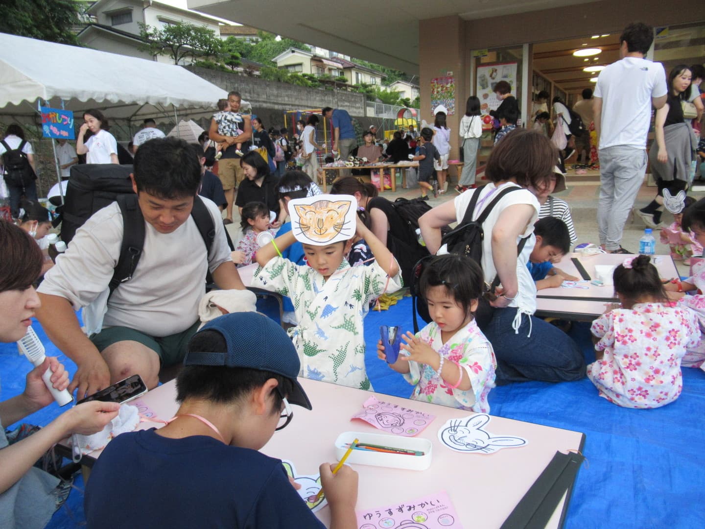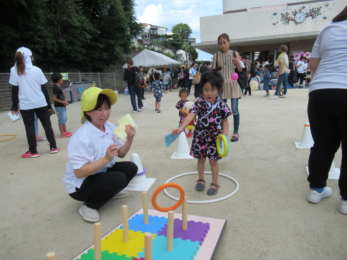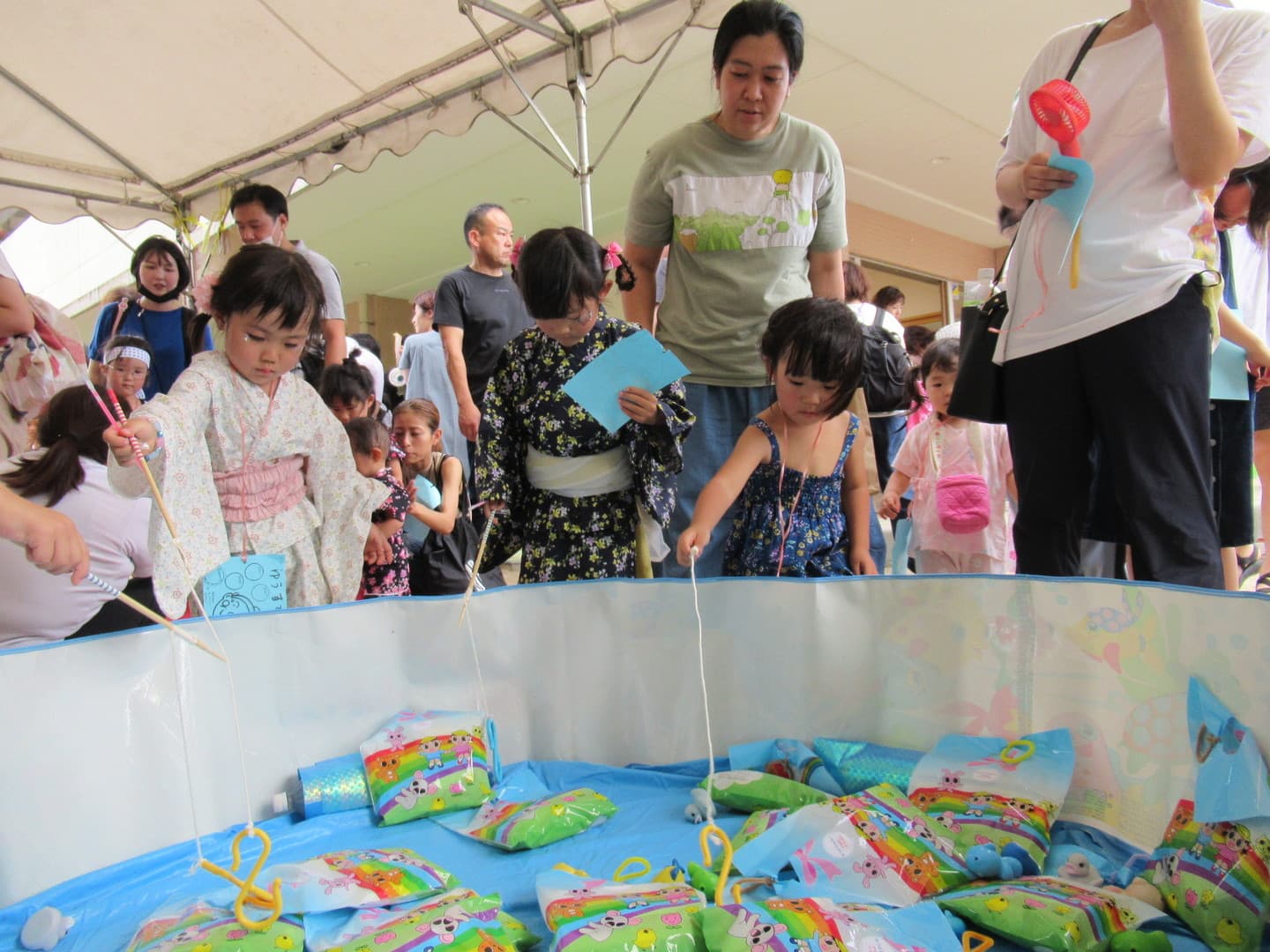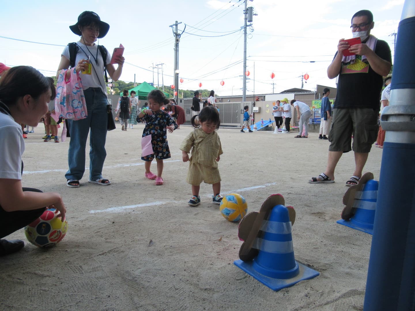 今年は久しぶりに通常開催となり、1年生などたくさんの方が遊びに来てくれました。そら・たいよう組さんは、お神輿を担ぎ「わっしょい!わっしょい!」と元気な掛け声をあげて園周辺を練り歩き、近くの施設まで行きました。園内では、ゲームコーナーやバザーなどがあり、最後はみんなで盆踊り♪暑い中でしたが、夏の夕暮れのひと時を楽しく過ごすことができました。