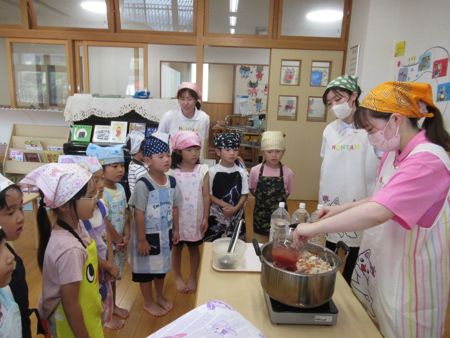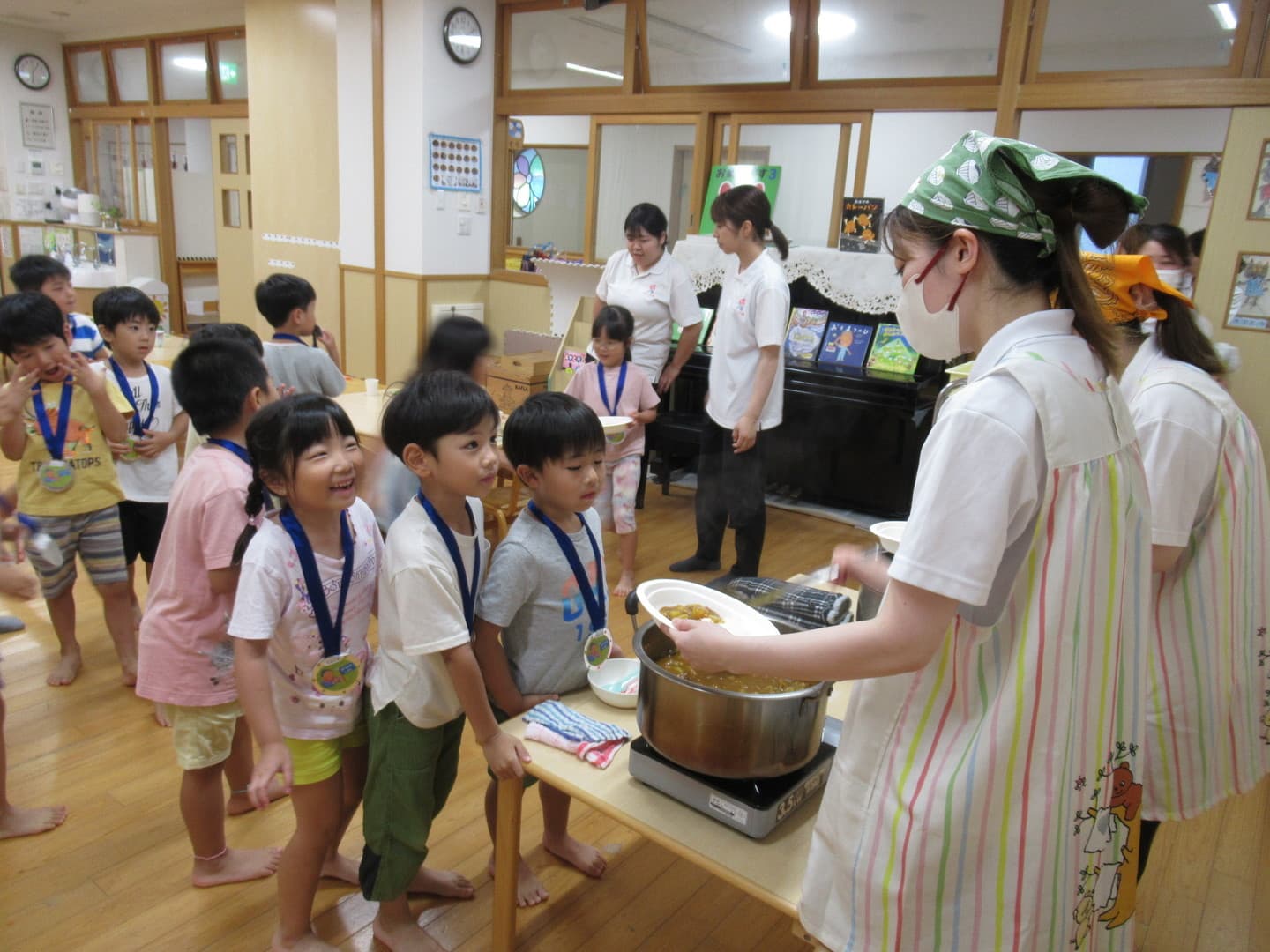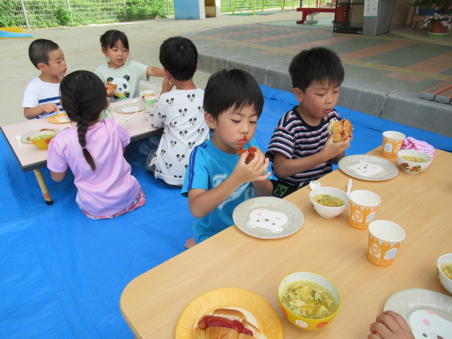 ばばばあちゃんからお手紙が届き、お泊まり保育を楽しみにしていたそらぐみさん。バスに乗ってうみたまごに行き、海の生き物に触れたり、カレー作りやお化け屋敷、キャンプファイヤーに先生と園児たちだけで過ごす夜・・・普段はできない体験をたくさんすることができました。お家の人と離れて過ごすドキドキワクワクの1泊2日。2日間で園児たちなりに何かを学び、成長できたと感じています。
