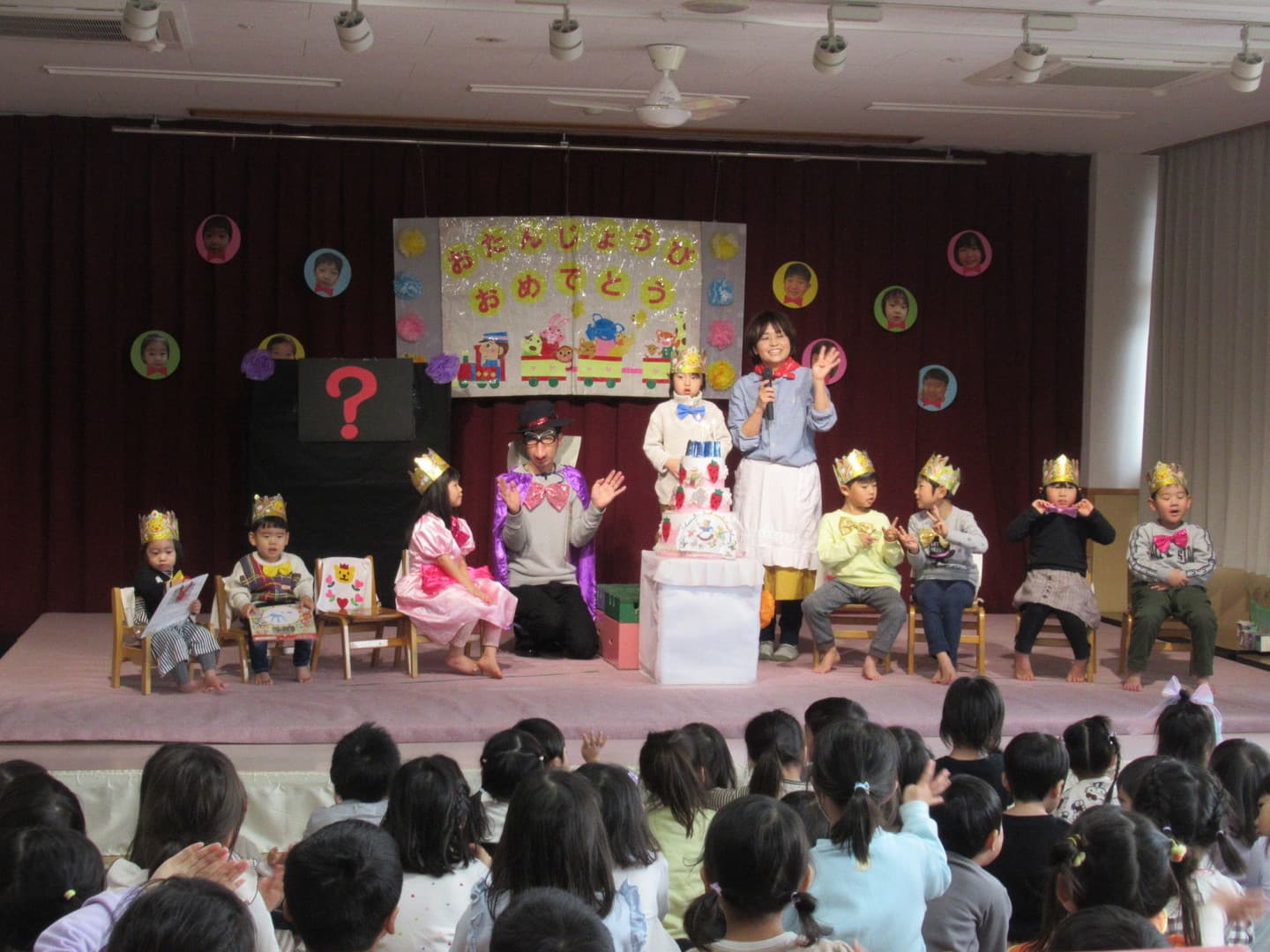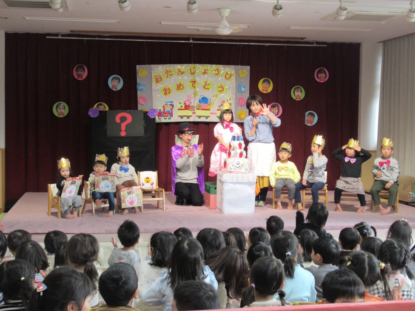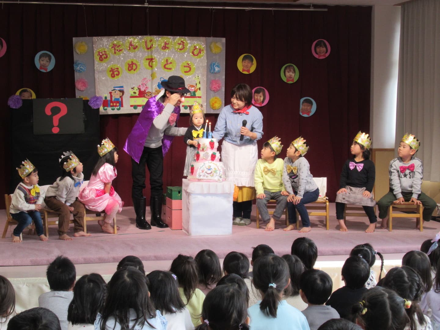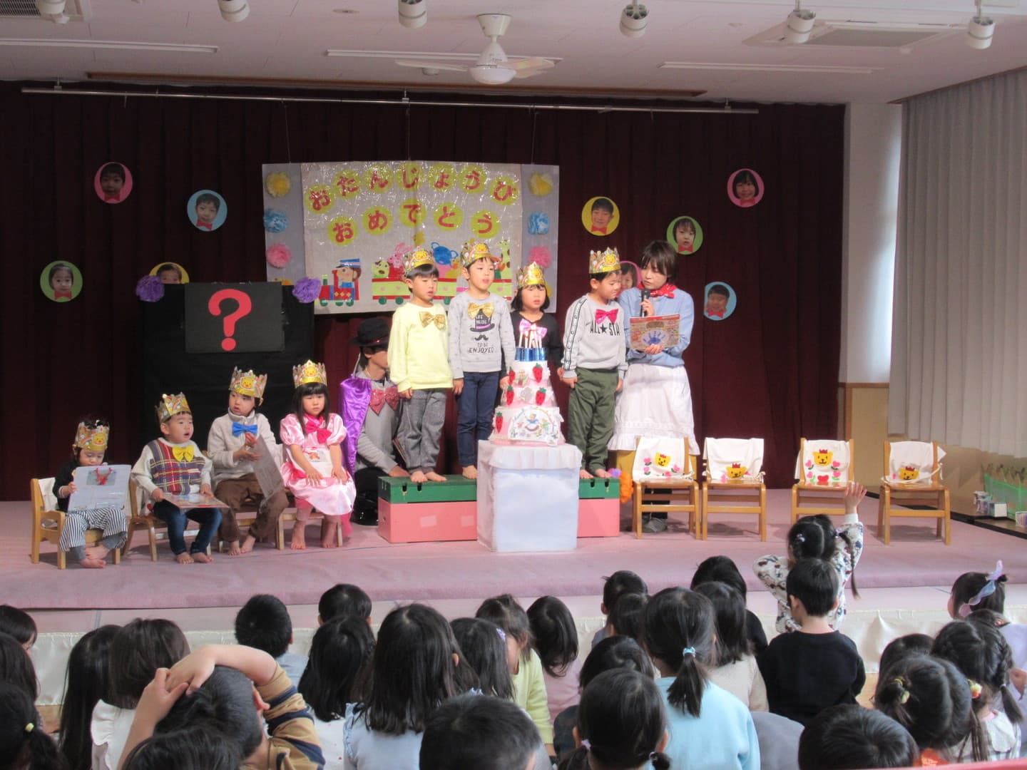 「?」の絵が描いてある不思議なボードを見つけたばばばあちゃんは1月生まれのお友だちを呼びました。でも誰も分かりません。すると・・・黒い帽子に紫色のマントを付けたクイズマンがやって来てきました!みんなでクイズをすることにしましたが、一つ大きくなった誕生児のお友だちはヒントをもらうとすぐに答えが分かり、嬉しそうでしたよ。
