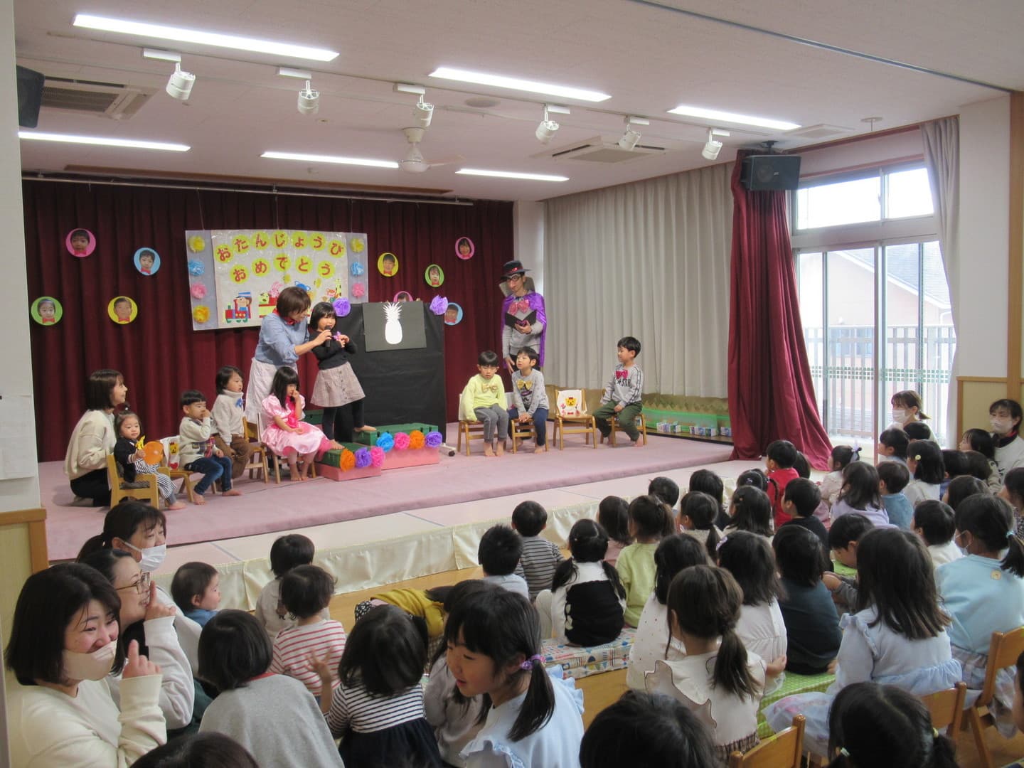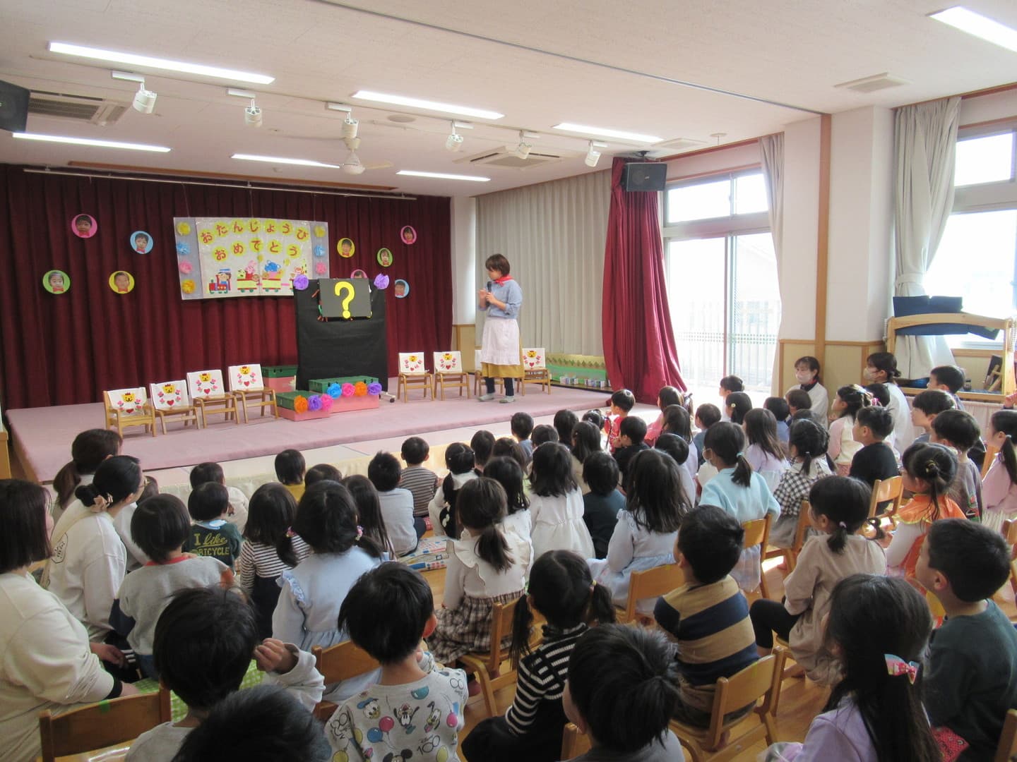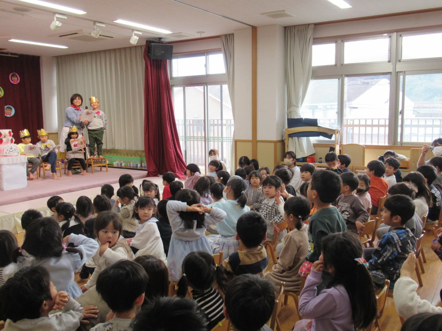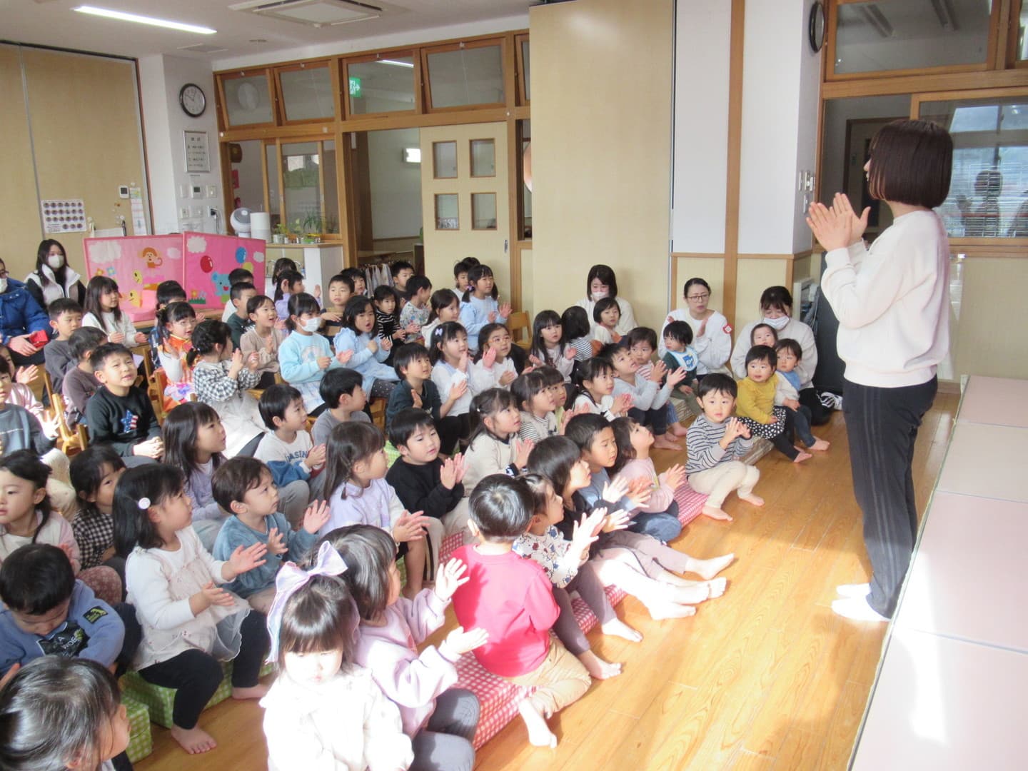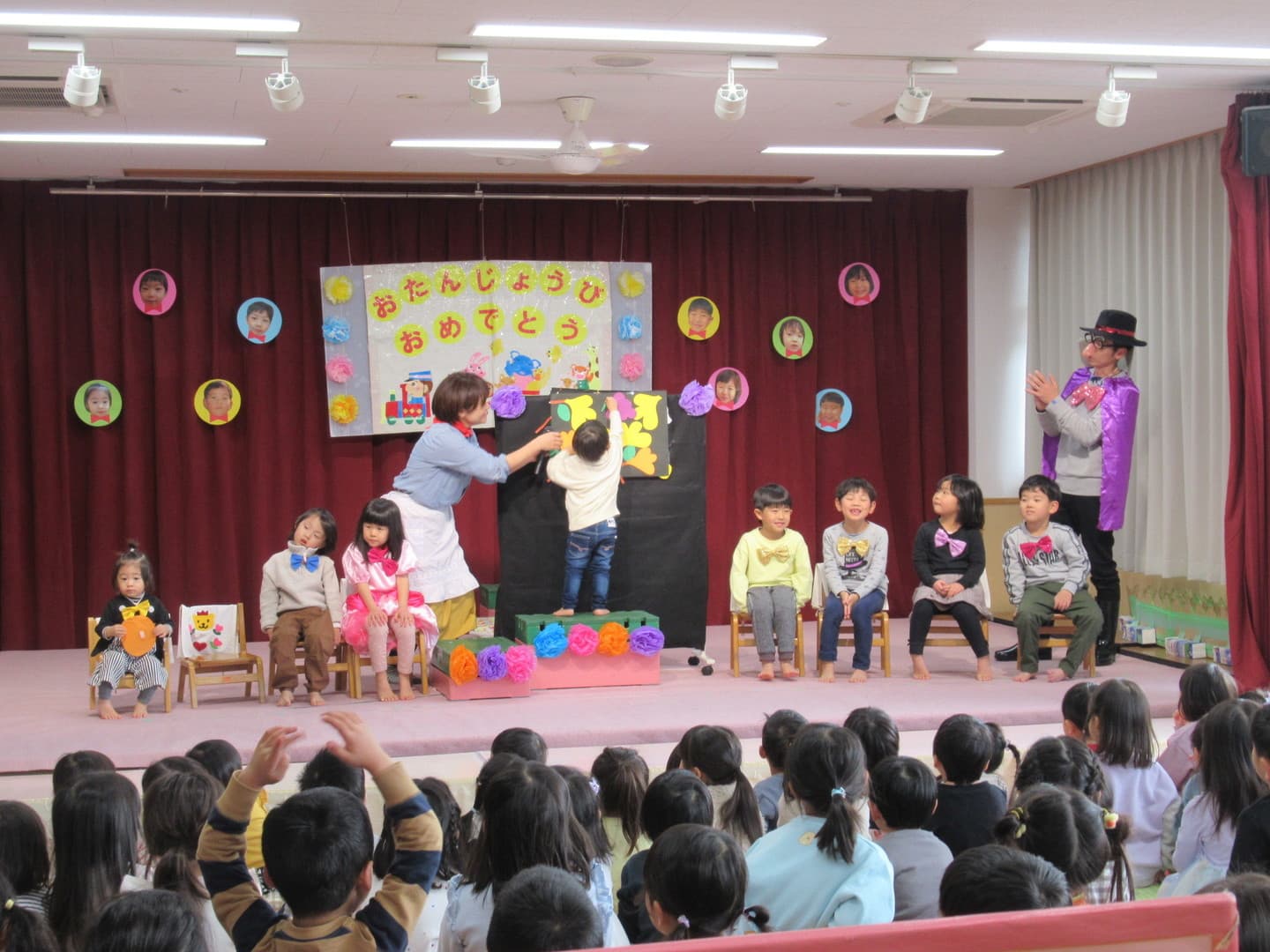 「?」の絵が描いてある不思議なボードを見つけたばばばあちゃんは1月生まれのお友だちを呼びました。でも誰も分かりません。すると・・・黒い帽子に紫色のマントを付けたクイズマンがやって来てきました!みんなでクイズをすることにしましたが、一つ大きくなった誕生児のお友だちはヒントをもらうとすぐに答えが分かり、嬉しそうでしたよ。
