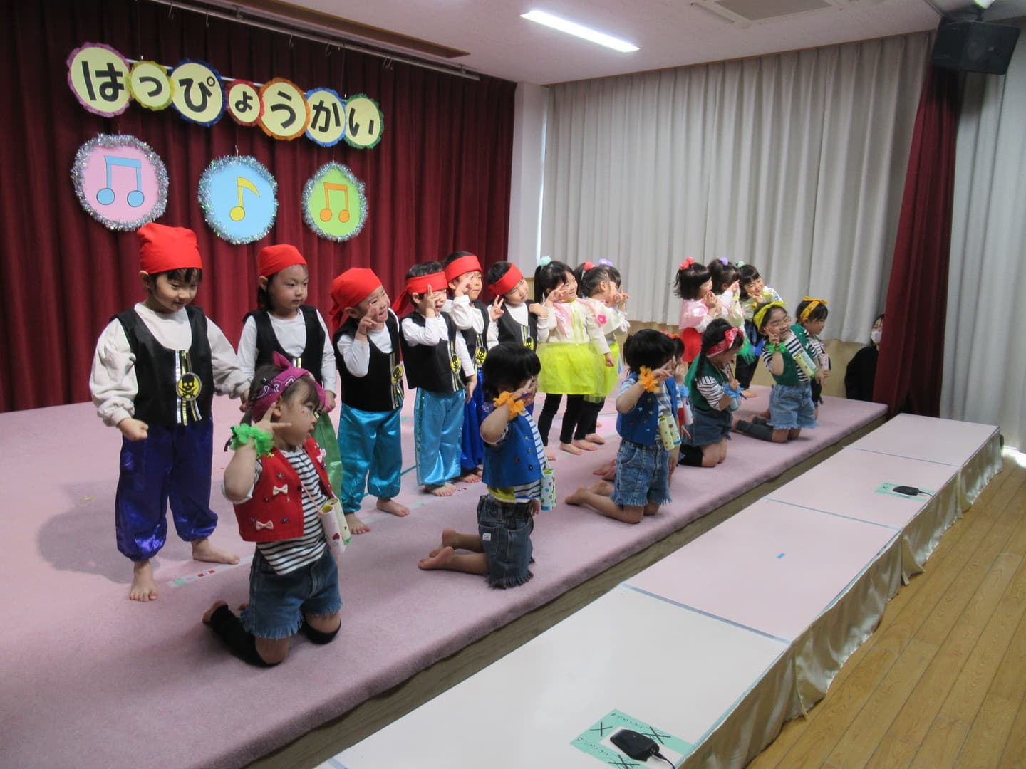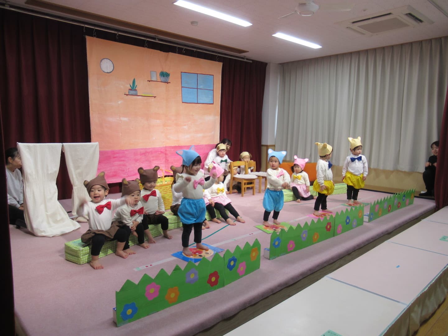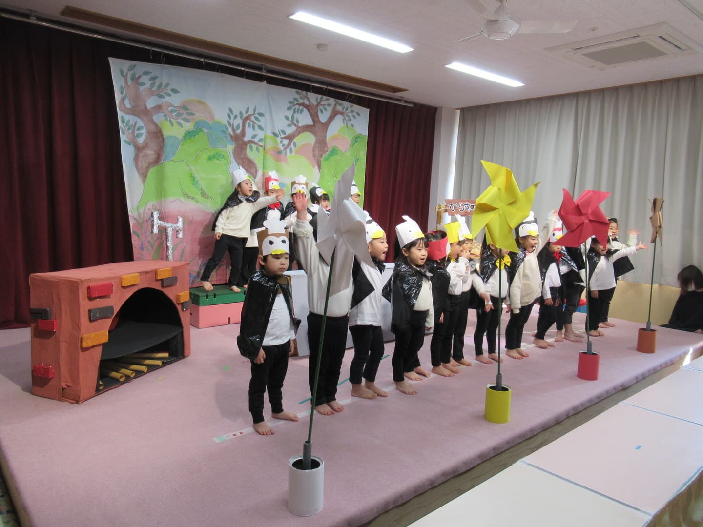 お話ごっこや劇遊びでは、月刊絵本やお気に入りの絵本を基に、各クラス発達に合わせた内容を考えお友だちや保育者と一緒に取り組みました。以上児クラスは歌やダンス、リズム運動などもあり、みんな頑張っていましたよ。今年はたくさんの方の見に来ていただき園児たちも嬉しそうでした!発表会ごっこでは、やりたい役をしてみんなで楽しみました。