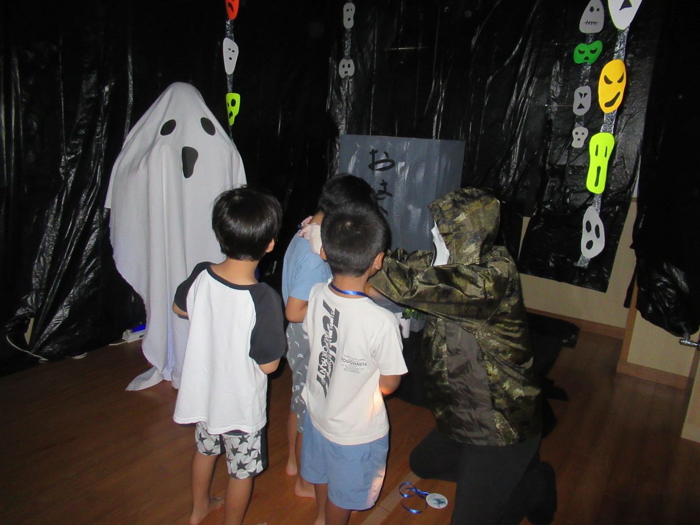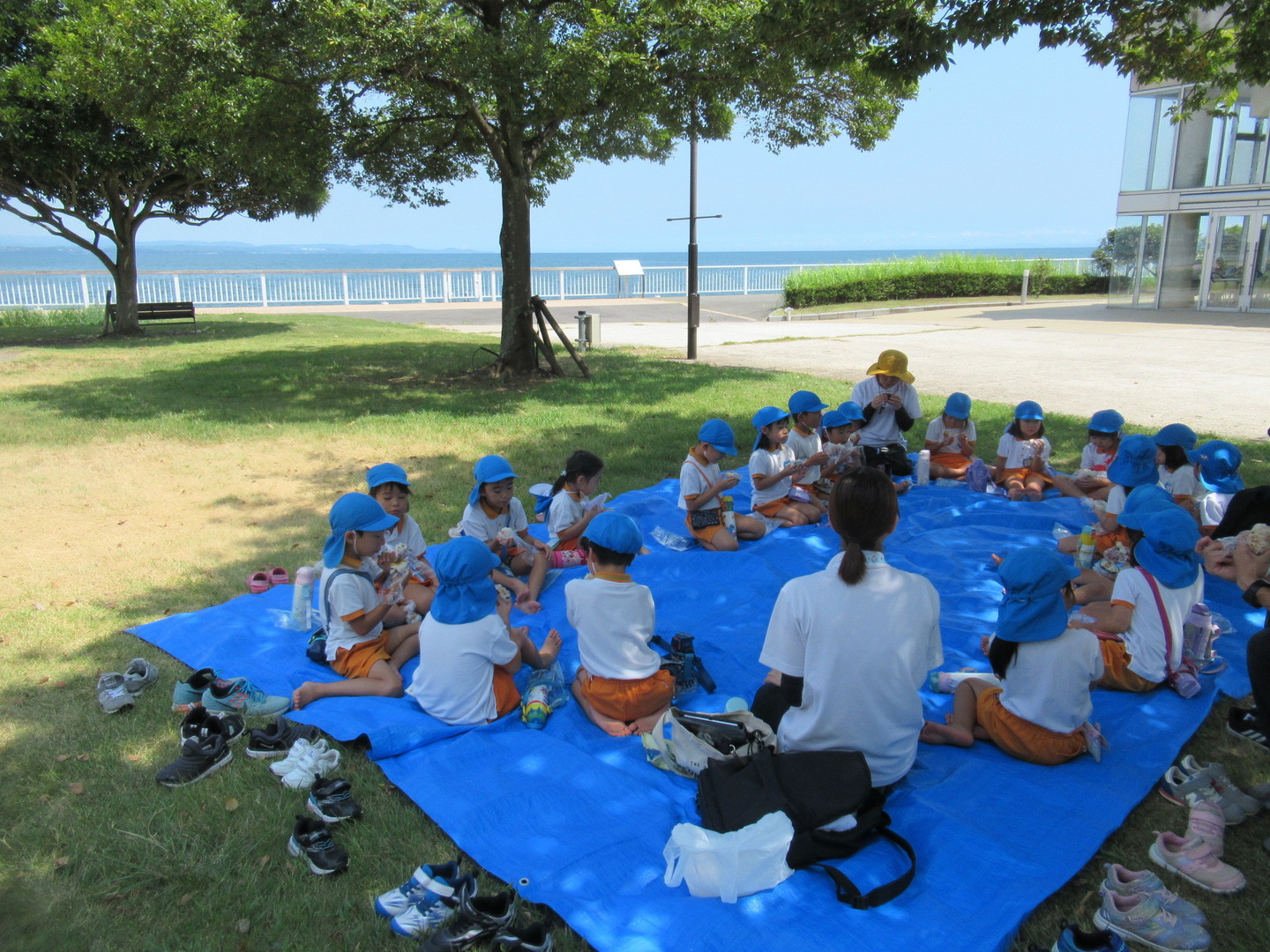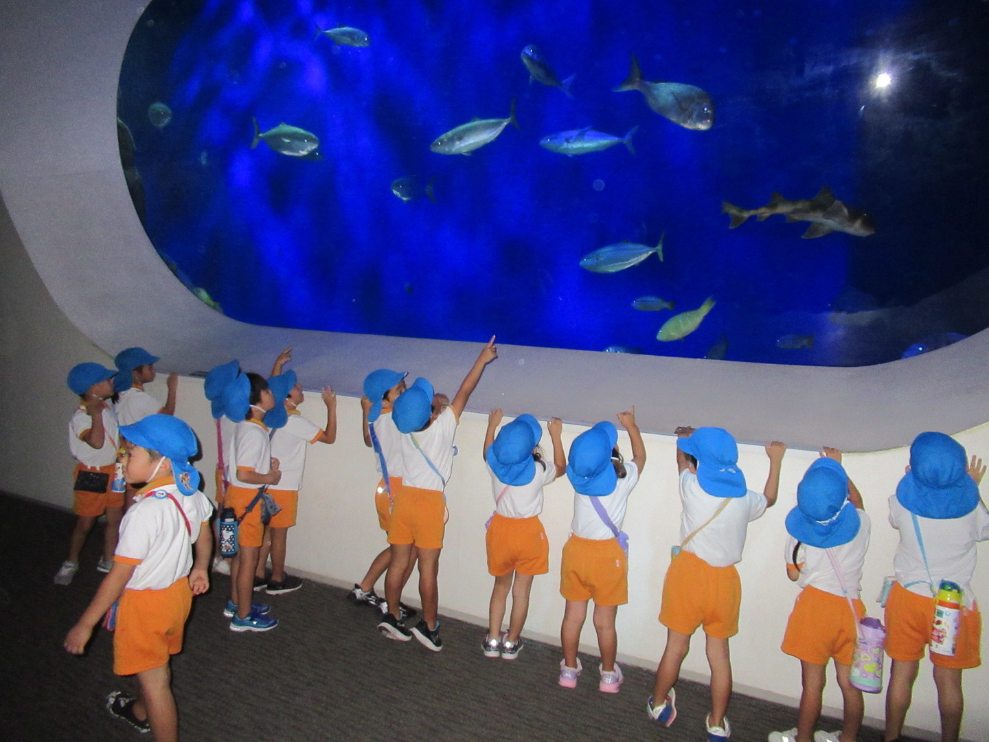 お泊まり保育を楽しみにしていたそらぐみさん。うみたまごでは、様々な海の生き物を見たり、触れて大喜び!園に帰ってからは、夕食作りや勇気を出したお化け屋敷、キャンプファイヤーなど・・・普段はできない体験をたくさんすることができました。お家の人と離れて過ごした2日間。お迎えに来ると、みんな嬉しそうに抱きつき、安心した様子でした。にじうおから届いた手紙を順番に読み、様々なミッションをクリアしていったそら組さん。 お泊まり保育を通して園児たちなりに何かを学び、また1つ成長できたと感じています。