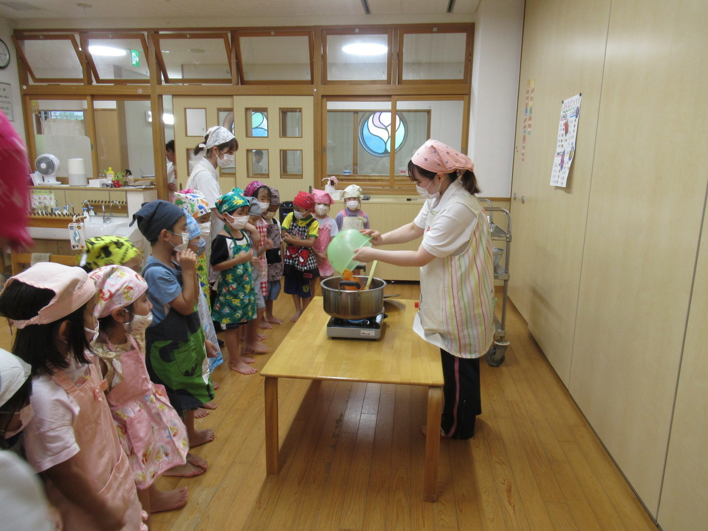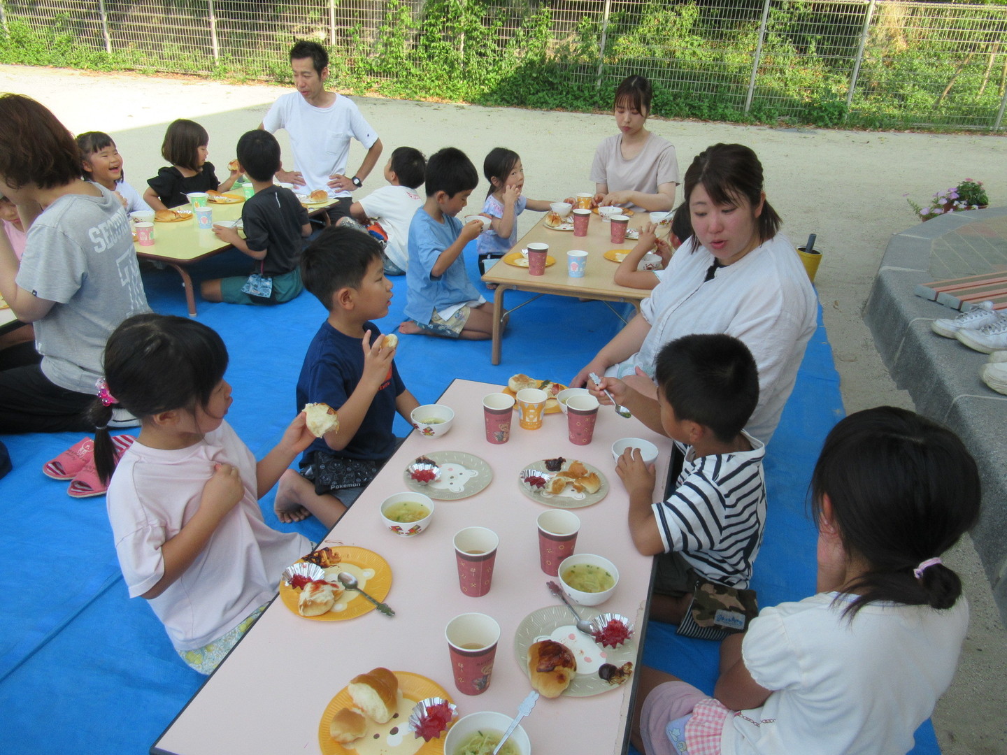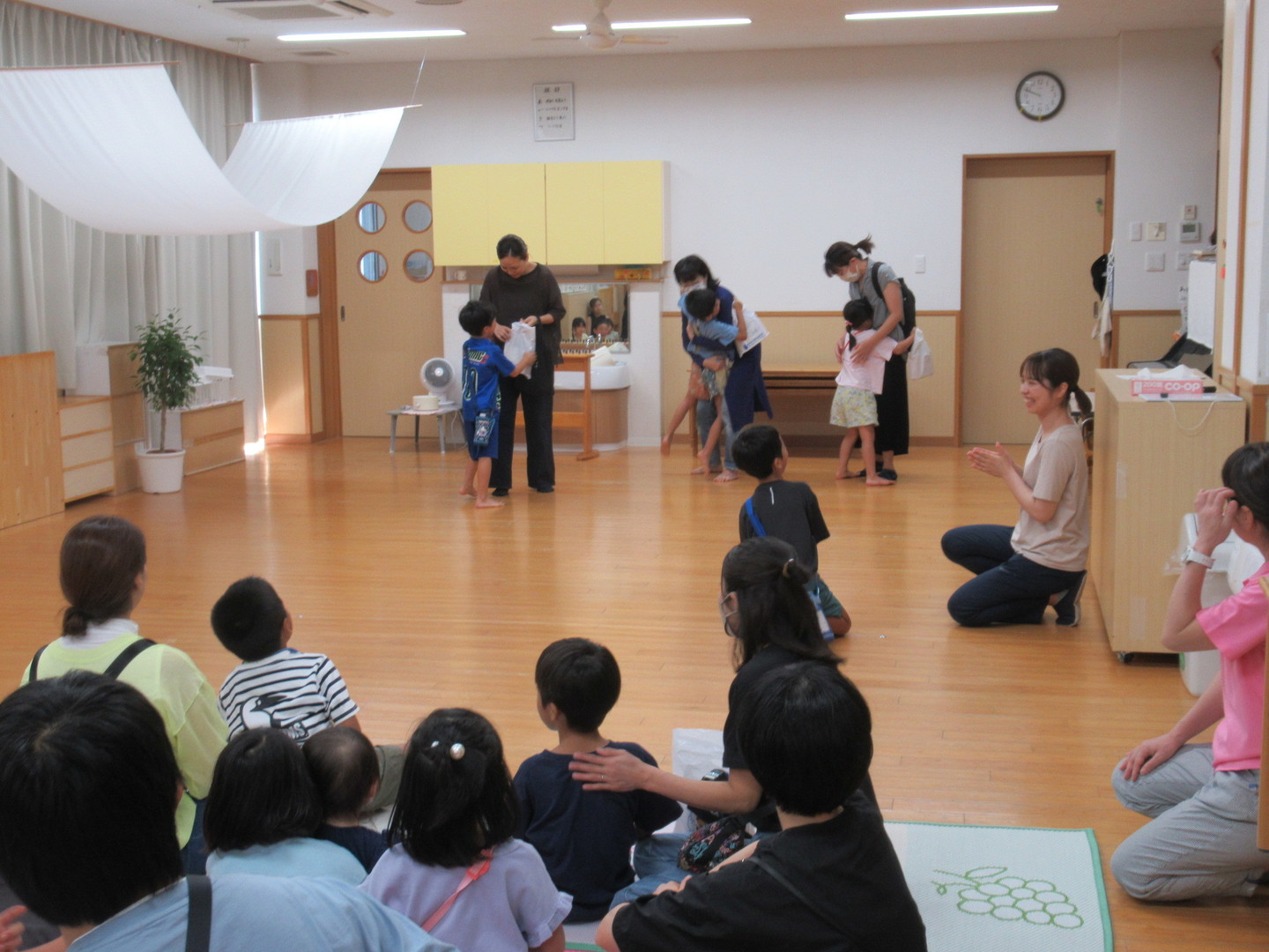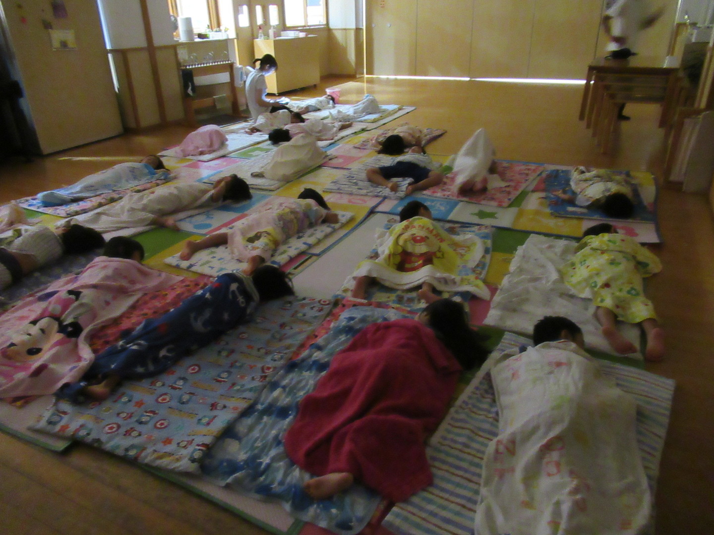 お泊まり保育を楽しみにしていたそらぐみさん。うみたまごでは、様々な海の生き物を見たり、触れて大喜び!園に帰ってからは、夕食作りや勇気を出したお化け屋敷、キャンプファイヤーなど・・・普段はできない体験をたくさんすることができました。お家の人と離れて過ごした2日間。お迎えに来ると、みんな嬉しそうに抱きつき、安心した様子でした。にじうおから届いた手紙を順番に読み、様々なミッションをクリアしていったそら組さん。 お泊まり保育を通して園児たちなりに何かを学び、また1つ成長できたと感じています。