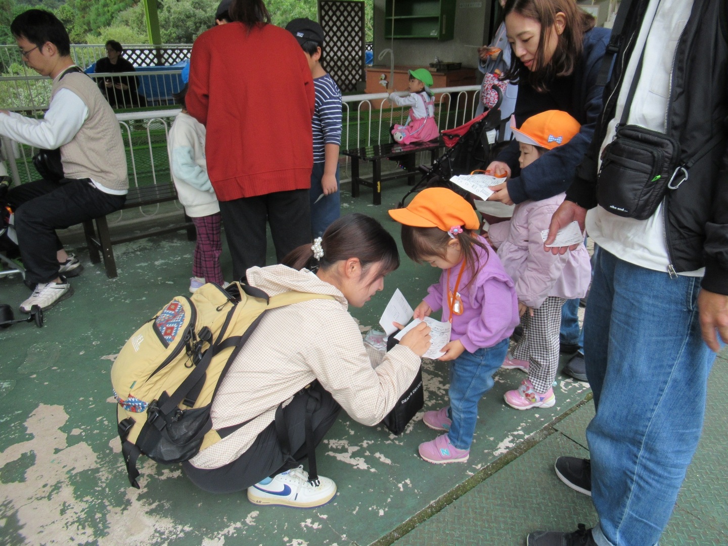 今年は、ラクテンチで現地集合解散型の親子遠足を行いました。初めにホールでラクテンチに関するクイズやじゃんけん列車で交流をしてから、園内で遊びました。スタンプラリーも実施し、ミッションをクリアしてスタンプを押してもらったり、お菓子をもらえると嬉しそうでした!クラスのみんなであひるの競走に行ったり、お友だちや職員と乗り物に乗ったり・・・いつもとは違う体験もでき、楽しそうな笑顔をたくさん見ることができて良かったです。