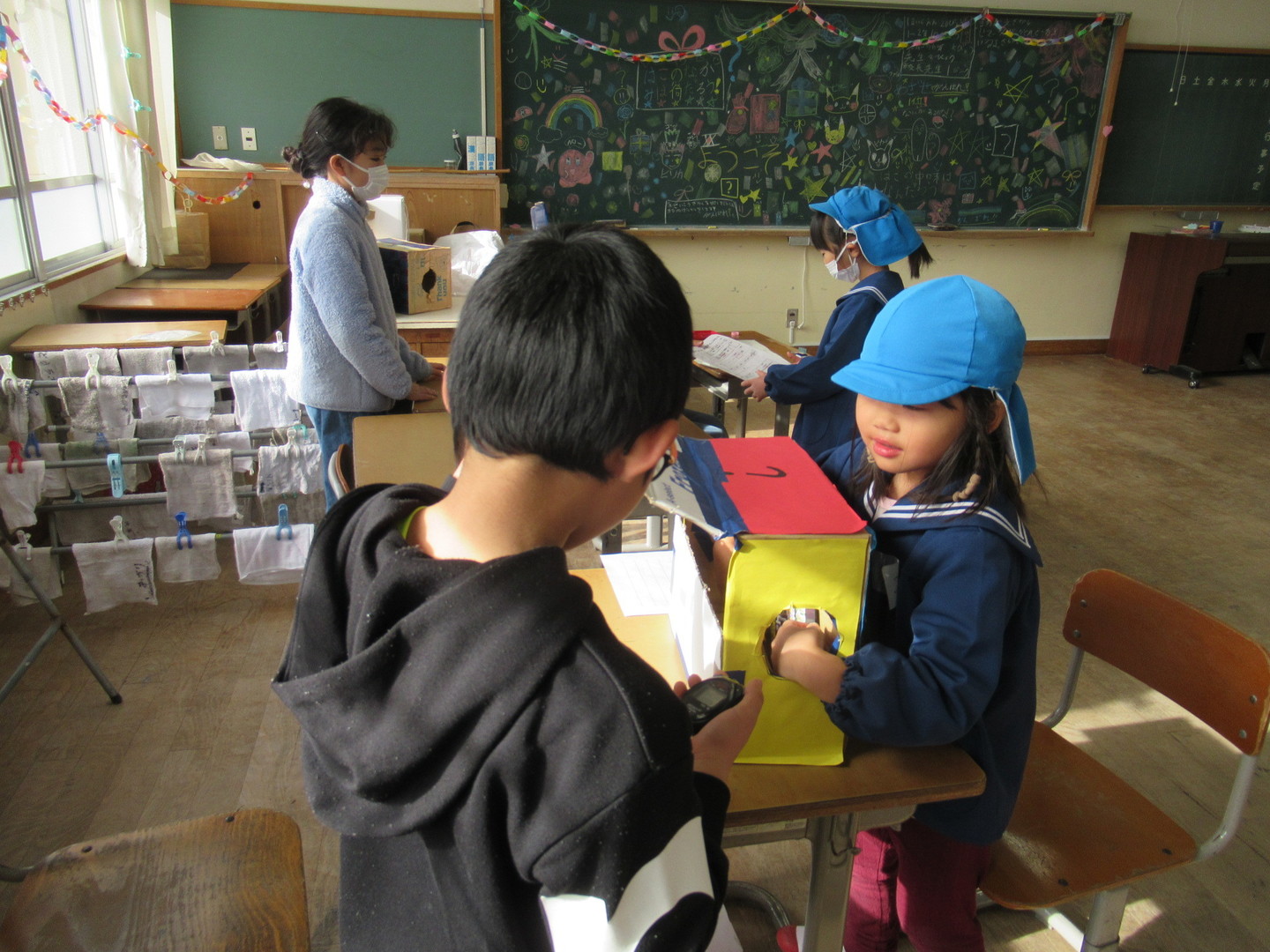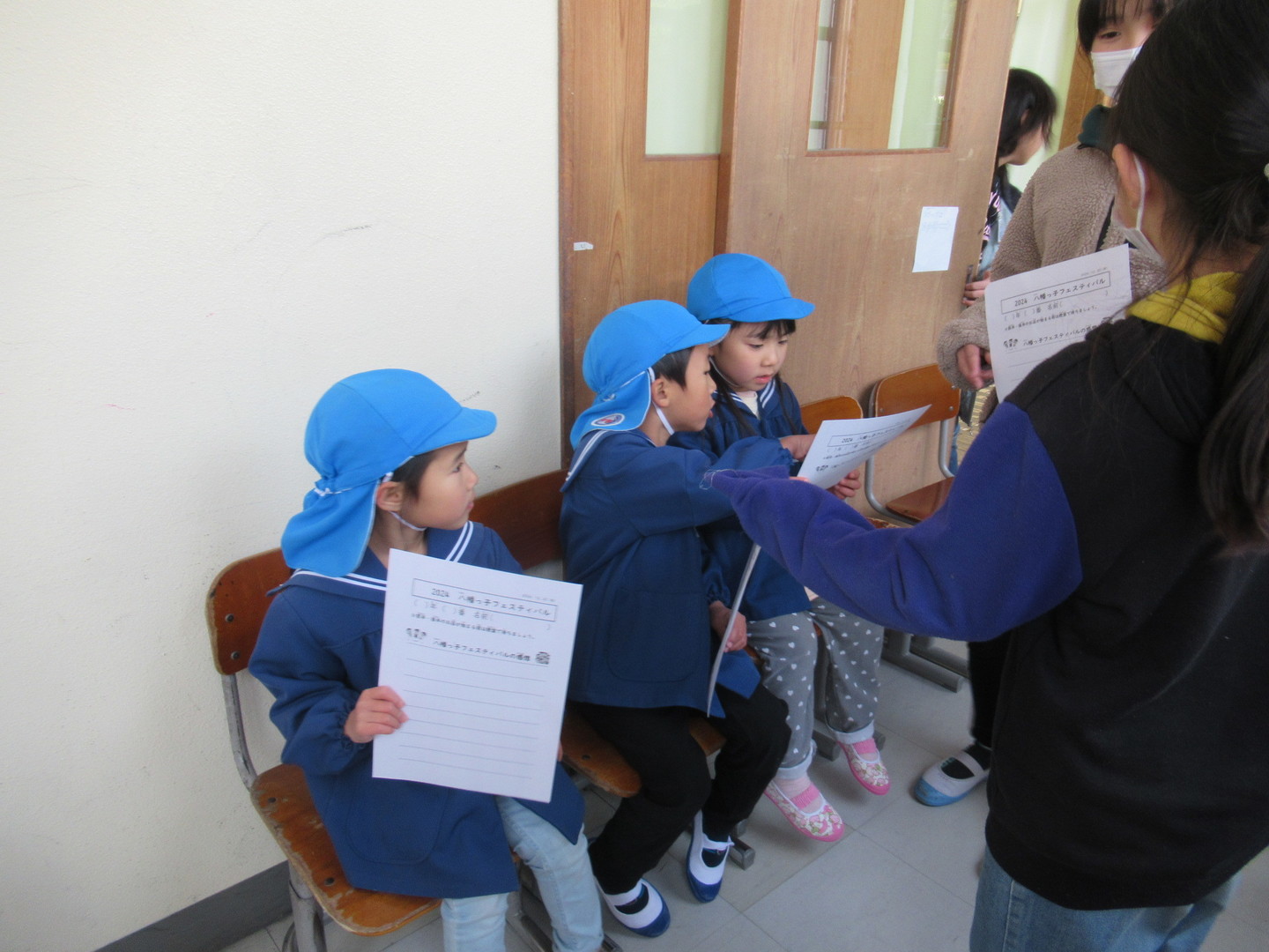 そら組さんが八幡っ子フェスティバルに参加しました。5年生のお兄さんお姉さんが校内を案内してくれ、一緒に色々なお店を回りました。各コーナーではゲームのやり方を小学生に優しく教えてもらい、園児たちも楽しんでいましたよ。実際に校舎に入ったり、小学生と関わることで、1年生になることへの期待が更に高まったように感じます。最後は1年生がら授業で作った図鑑をプレゼントしてもらったので、大事に見たいと思います。