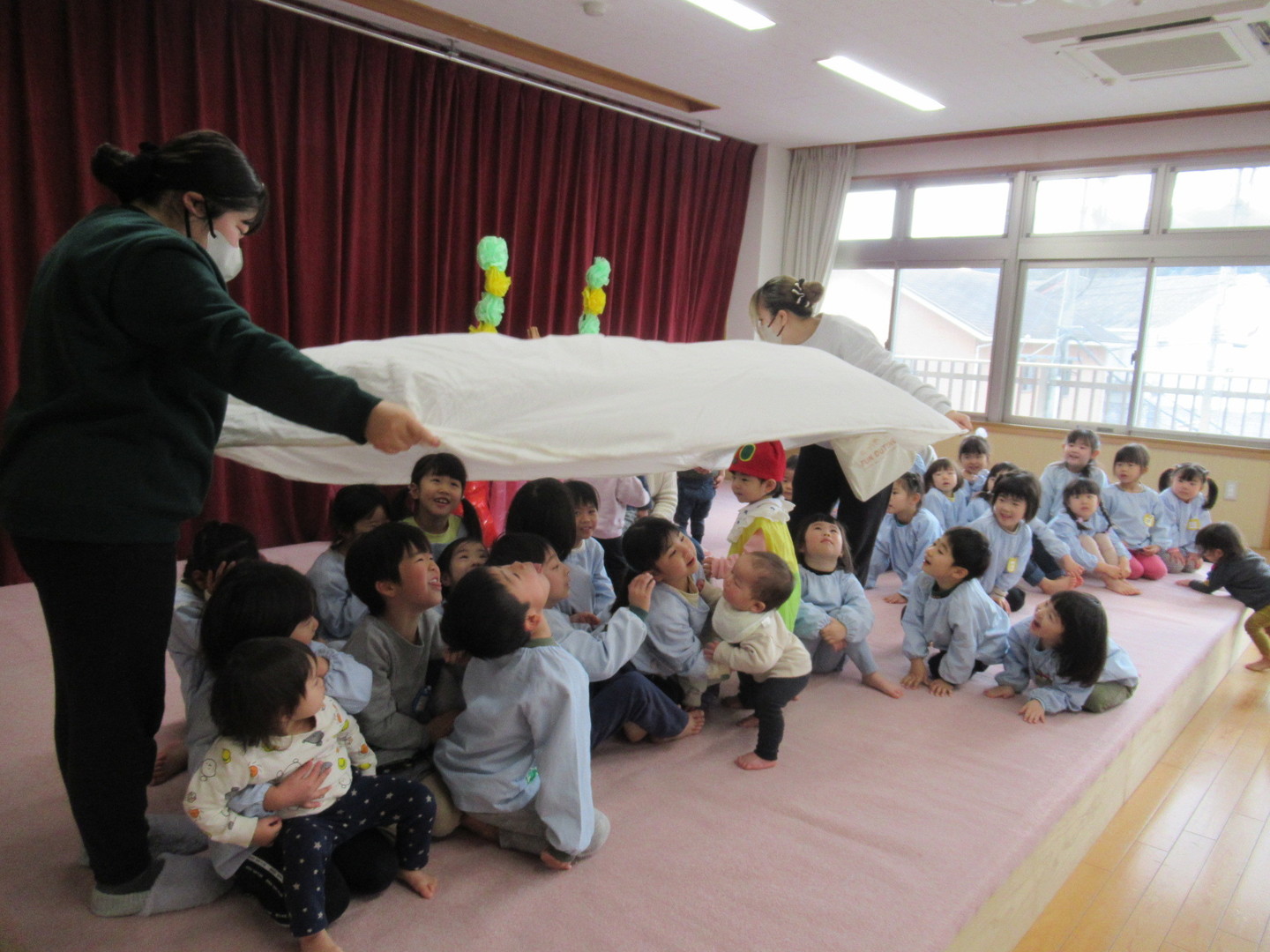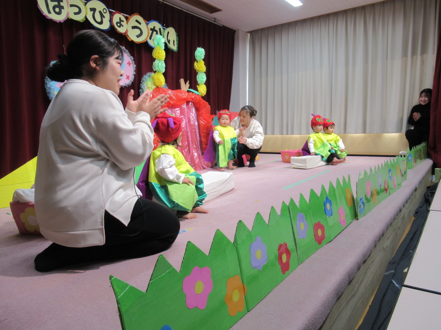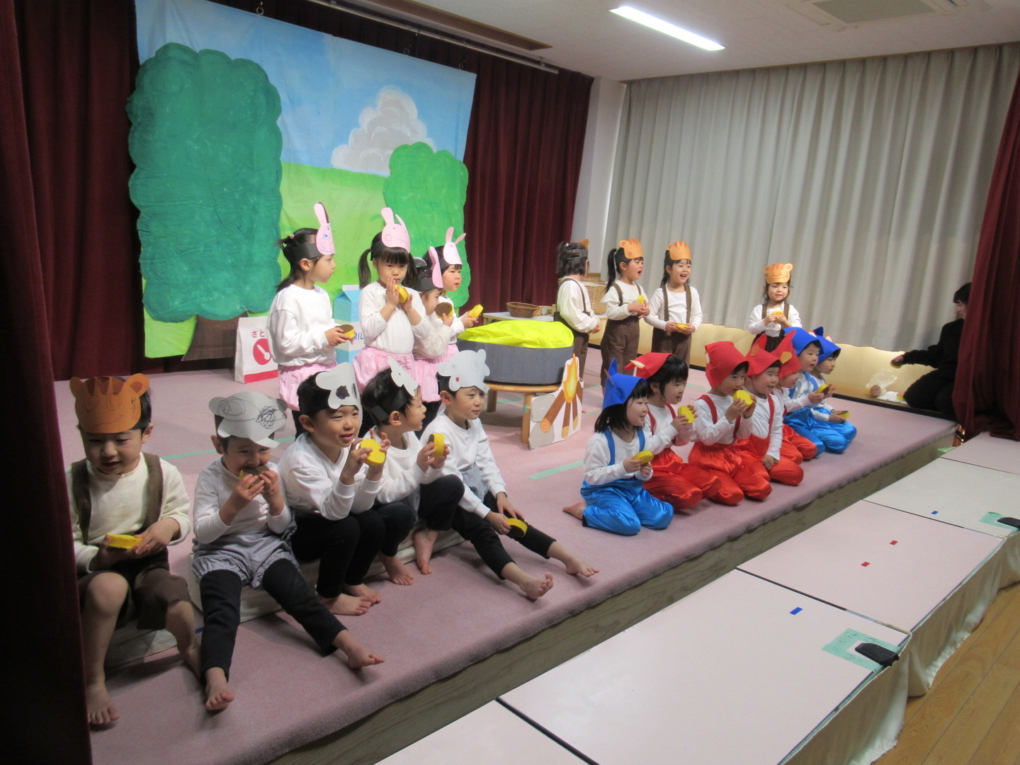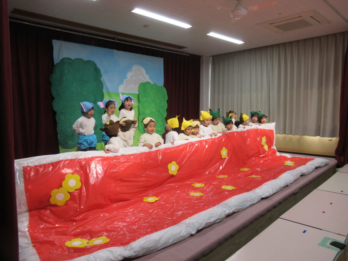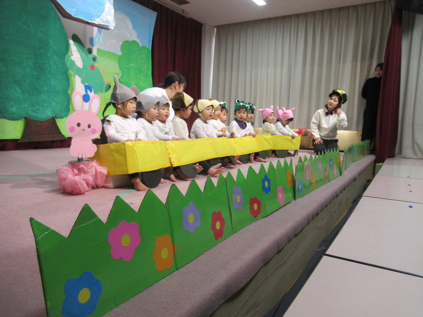 わらべうたや絵本の世界、大好きな電車や虫など・・・各クラス年間を通して遊んできたことを発表会で披露しました。歌やリズムトレーニングなどもあり、成長した姿を見てもらうことができ、園児たちもお家の方からたくさんの拍手をもらって嬉しそうでした!発表会ごっこでは、やりたい役をしながら、みんなで余韻を楽しみました。